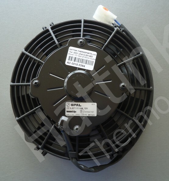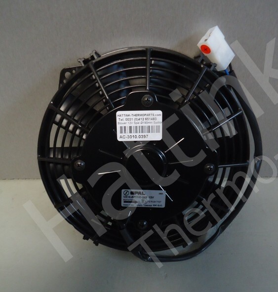 Spal ventilatoren 12V/24V die blazend zijn (aangeduid met een S) blazen lucht vanuit het rooster naar de montage zijde toe. Een Spal ventilator 12V/24V die zuigend (aangeduid met een A) is zuigt de lucht vanaf de montage zijde naar het de rooster over de motor heen.